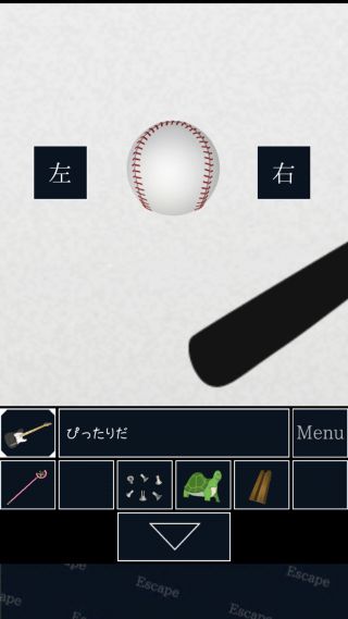 「半分に割れたボール」をはめて、バットで確認した『左左右左左右』の順で押す。