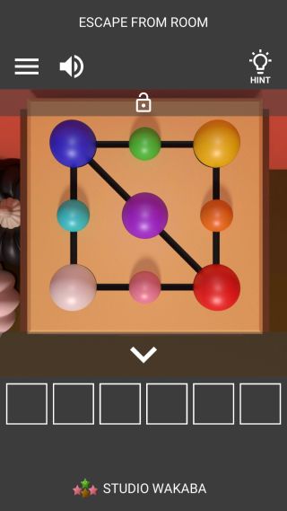 4つの「玉」をはめて、中間の色が隣の色の混合色になるように入れ替える。