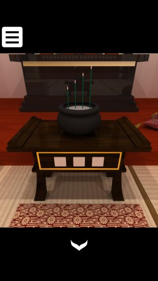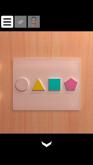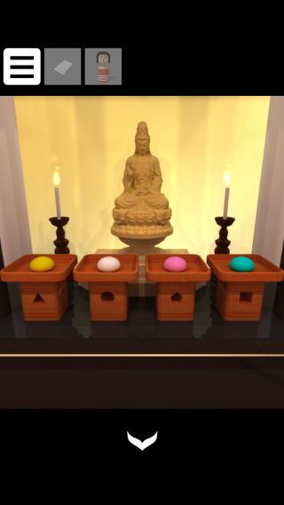 奥のお供え物の色と下の図形『三角形=黄、丸=白、五角形=ピンク、四角形=水色』を確認。