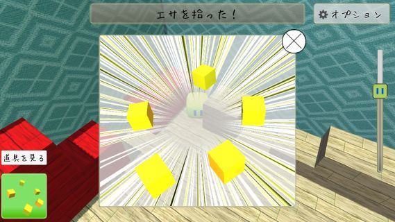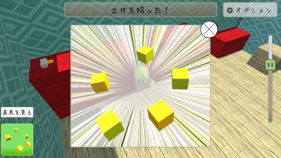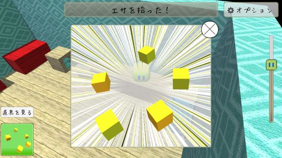 赤いブロックの間の「エサ」を入手。