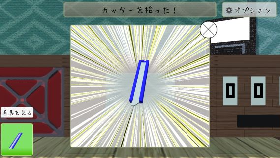 机の下から「カッター」を入手。