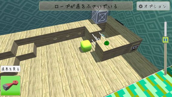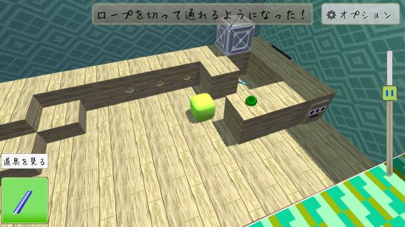 ロープを「カッター」で切る。