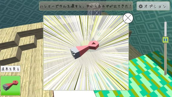 樽に「ハンマー」を使って、「赤い鍵」を入手。