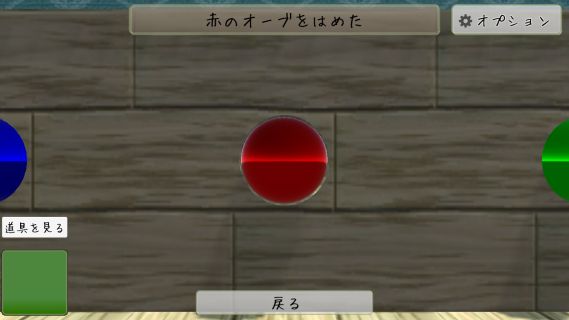 枕の模様をヒントに、3つの「オーブ」を『青赤緑』の並びではめる。