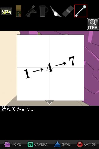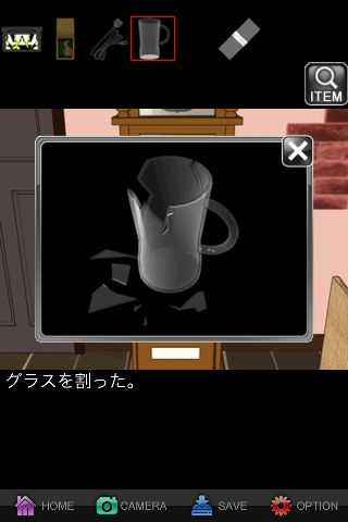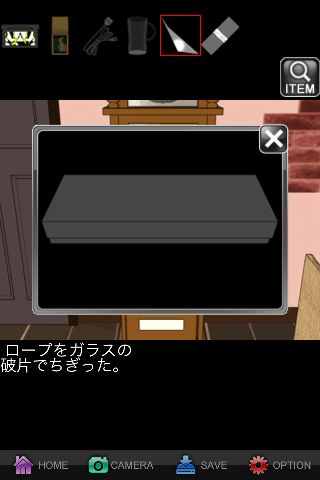 『ロープを切断できるものは~』のメッセージを出して、「グラス」を出す。