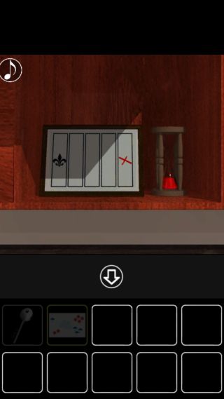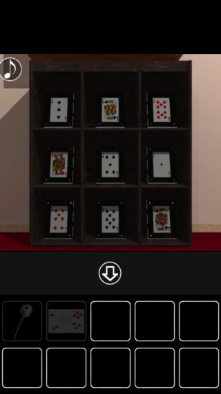 トランプの棚をヒントに、赤いトランプの位置のボタンだけを押す。