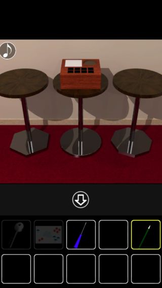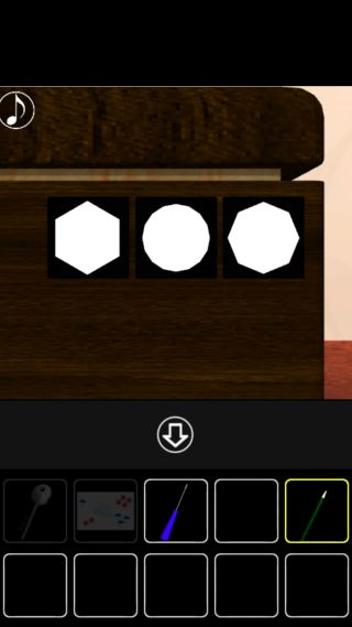 右の丸テーブルを拡大して、下の図形の形『六角形、円、八角形』を確認。