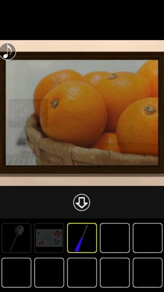 オレンジの絵の前へ。