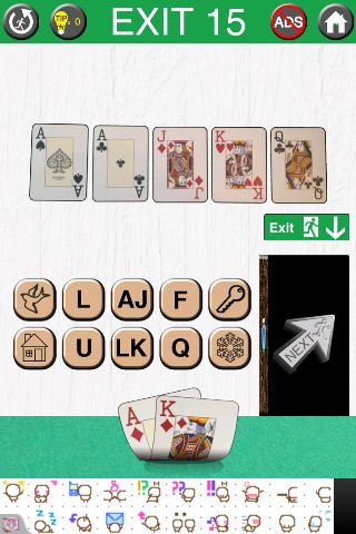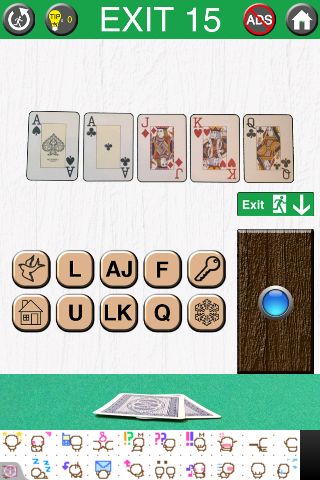 フルハウスとなるように『F』『U』『L』『L』『家』と押すと、床のトランプがめくれる。