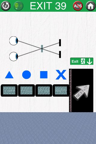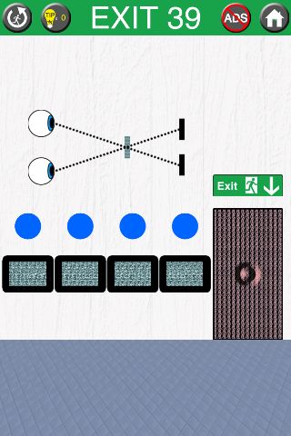 4つのモニターをそれぞれタップすると3D画像が現れる。これを交差法で見ると図形が現れる。