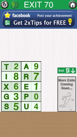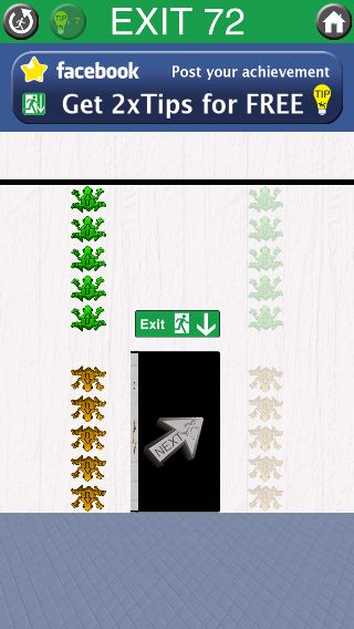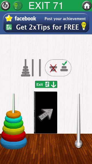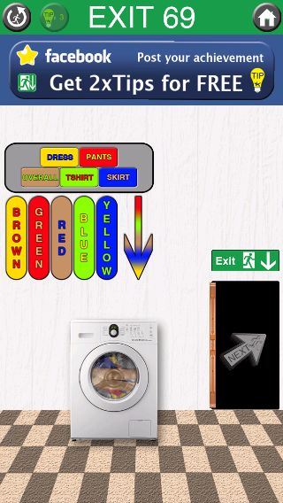 100 Exits 無料 5.0 評価する 送信する EXIT 69~72 EXIT 69 『黄色いパンツ』、『緑のTシャツ』、『赤いスカート』、『青いワンピース』、『茶色のオーバーオール』の順で洗濯機に入れる。 洗濯機のスイッチを入れる。 EXIT 70 写真の数字を入力する。 EXIT 71 ハノイの塔のパズルを解く。 手順が多いので順番は割愛。。 EXIT 72 上下のカエルを入れ替える。 EXIT 1~6 EXIT 7~15 EXIT 16~20 EXIT 21~25 EXIT 26~30 EXIT 31~37 EXIT 38~42 EXIT 43~49 EXIT 50~54 EXIT 55~61 EXIT 62~68 EXIT 69~72 EXIT 73~76 EXIT 77~80