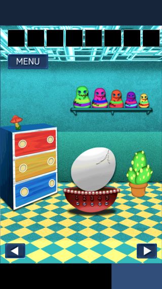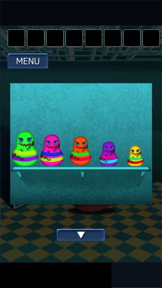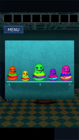 マトリョーシカを拡大して、『オレンジ、黄、緑、紫、ピンク』の並びに入れ替える。