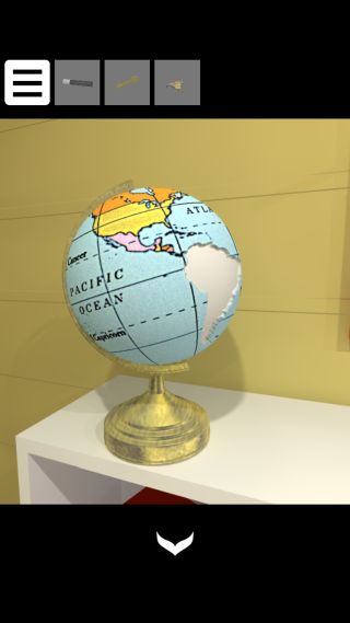 棚の上の地球儀を拡大して、「地図のパーツ」をはめる。