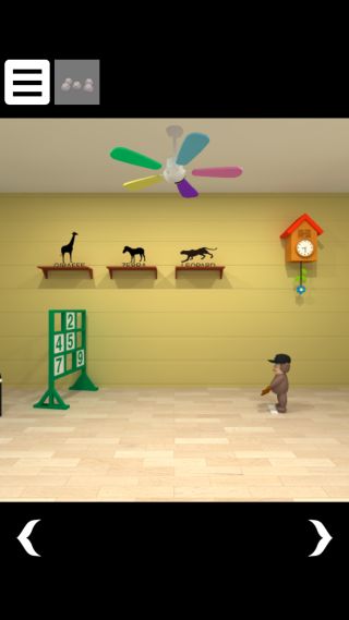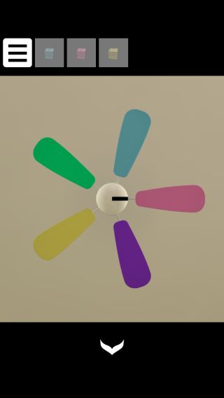 天井のファンを拡大して、時計回りに『ピンク、紫、黄、緑、水色』を確認。