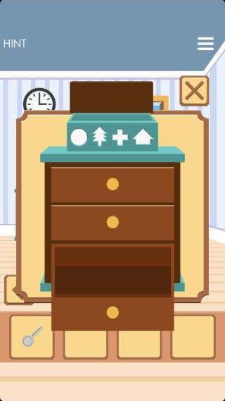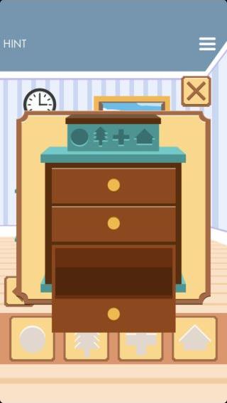 「十字のパーツ」を入手して、上の箱に4つの「パーツ」をはめる。