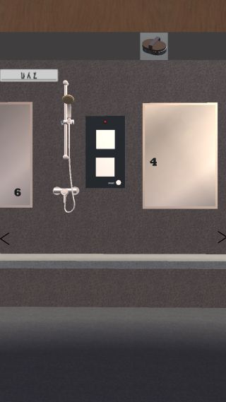 左の鏡のさらに左を調べて、2つの鏡に「タワシ」を使って『6、4』を確認。
