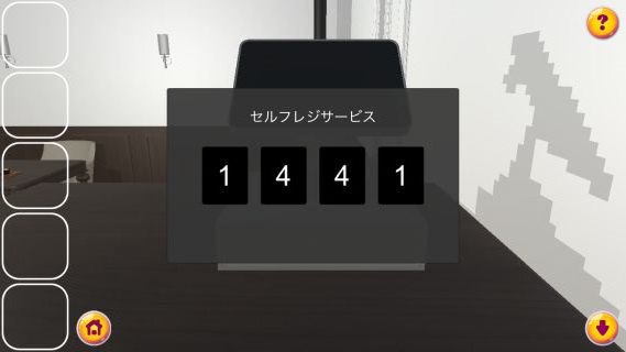 脱出ゲーム ショコラティエ 無料 0 評価する 送信する ALOOF PROJECT 攻略その3 レジを拡大して、『1441』に合わせる。 「鍵」を入手。 扉の前に移動。 「鍵」を使って、壁の額の前に移動。 左下の額に「鍵」を使う。 中央の「金の鍵」を入手して、白い扉の前へ。 「金の鍵」を使って、脱出。 攻略その1 攻略その2 攻略その3