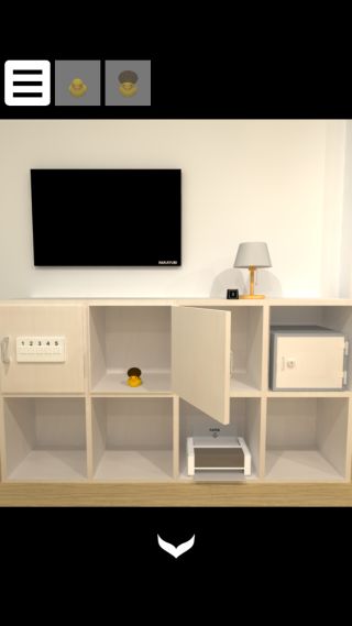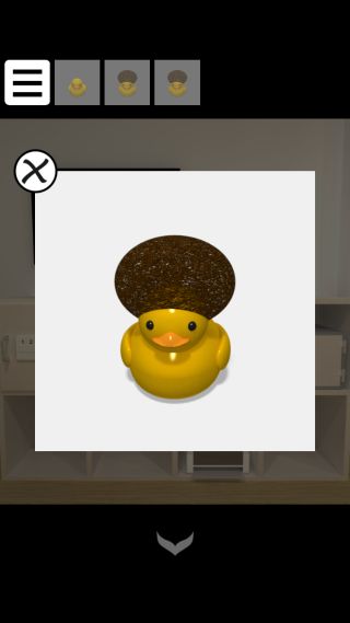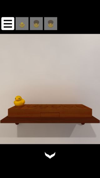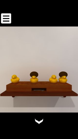 前の部屋のテーブルの上の香辛料のボトルの配置をヒントに、「アヒル」と「茶色い頭のアヒル」を置く。