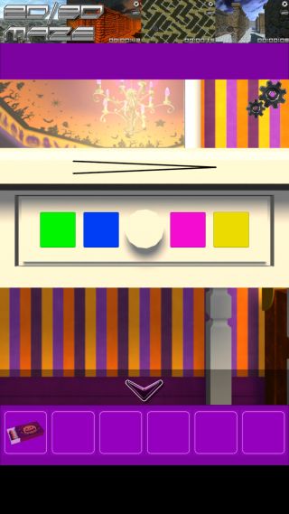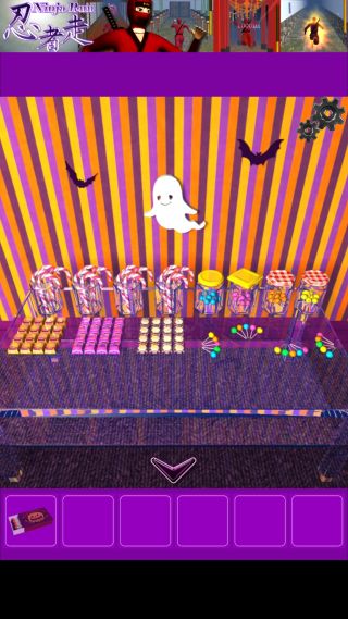 右下の5色のキャンディーの、5本のうちの中央のキャンディーの色と向き『ピンク=右、水色=上、オレンジ=下、緑=左』を確認。