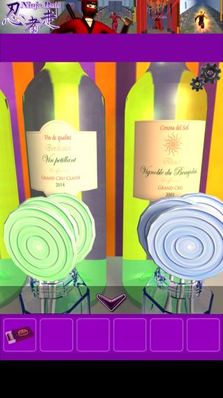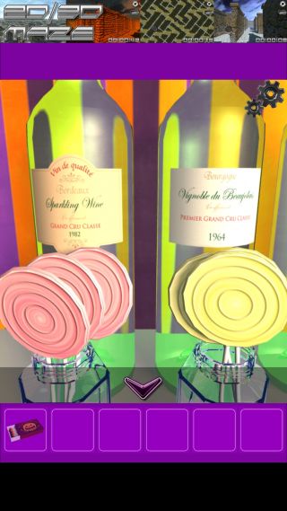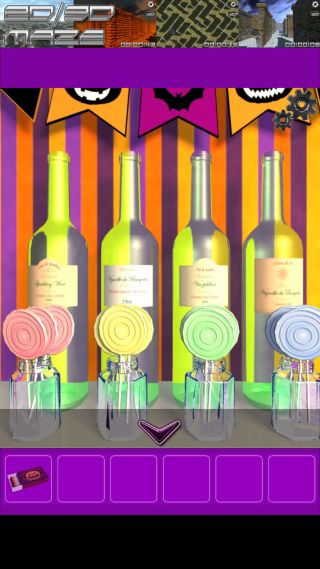 ボトルに書かれた年の大きい順で、キャンディーの色を見ると『緑、青、ピンク、黄』となる。