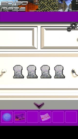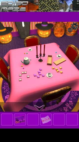ここのヒントは、部屋のテーブルの上の3色のチョコレートの配置になる。