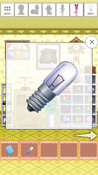 右の棚の中央から「電球」を入手して、茶色い棚を拡大。