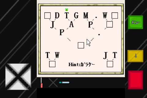 □が埋まったら、次は『Z字に切れ!』のヒントで左上から『Z』になるように□を繋げていくと『AJGTPD』という順番になる。
