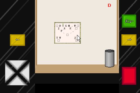 携帯(ガラケー)のキーがヒントになっており、アルファベットはそれぞれボタンの最初の文字になっている。