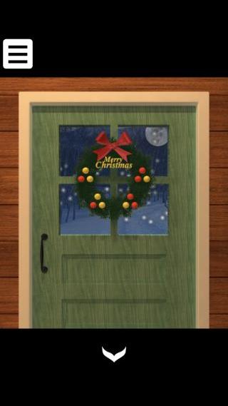 扉のクリスマスリースを拡大して、赤と黄の●の配置を確認。