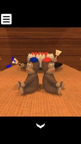 サルのおもちゃをヒントに、『青青赤青紫(赤+青)』の順で押す。