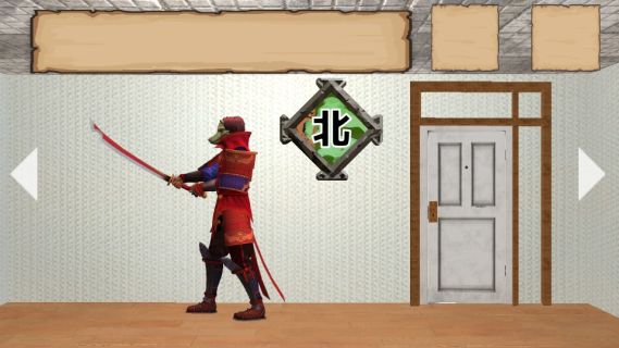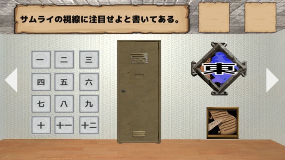 左に移動して、侍が向いている方向が『西』なのを確認。