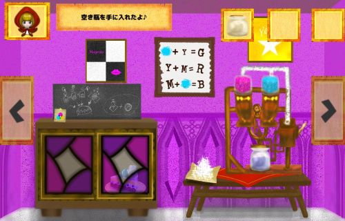まずは右の装置の色の組み合わせを『黄、水色』にして、「空き瓶」を使って「グリーンポーション」を入手。