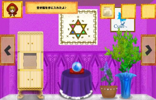 左の棚の中央の扉を開けて、「空き瓶」を入手。