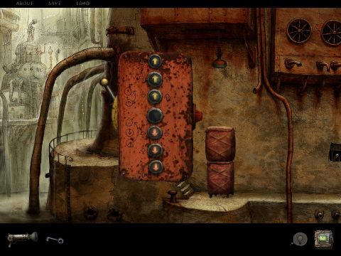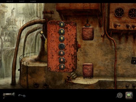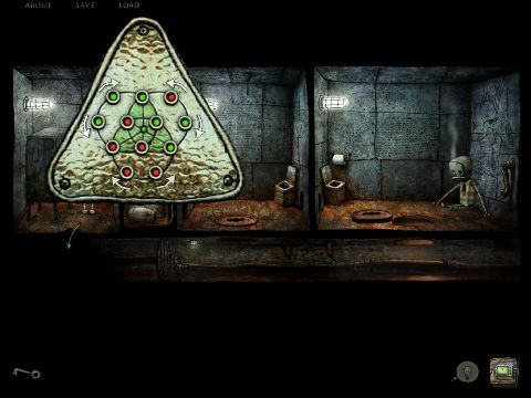 中央の装置でミニゲーム。赤と緑のボタンを全て入れ替える。