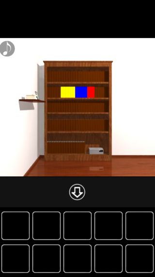 本棚の本を拡大して、『黄=6、青=5、赤=3』を確認。
