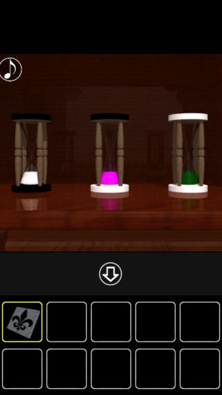 下の砂時計を拡大して、上下の白黒と砂の色を確認。