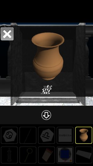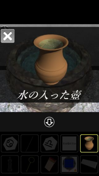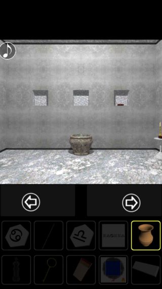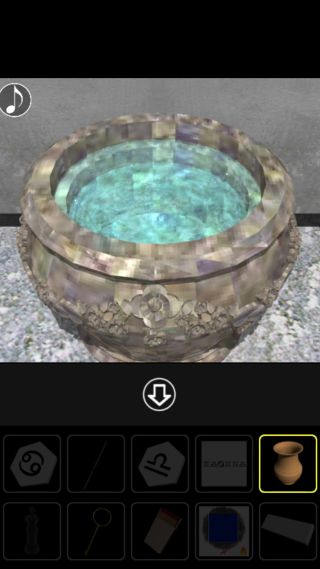 「壺」に水を入れて、壁の左のくぼみを調べる。
