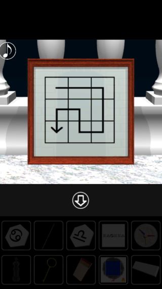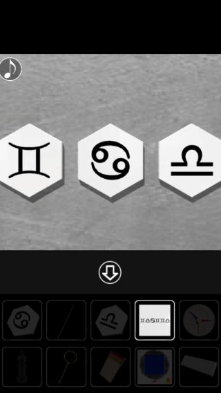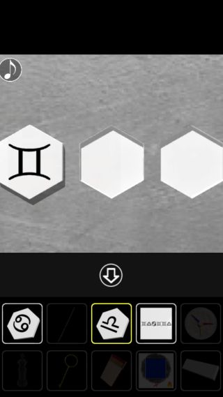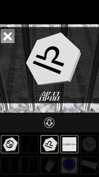 2つの「部品」をはめて、「紙」をヒントに『左右中左左右』の順で押す。