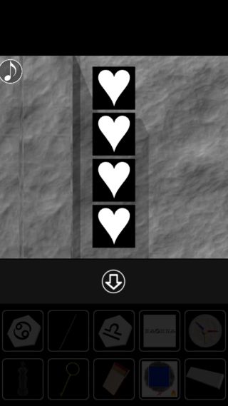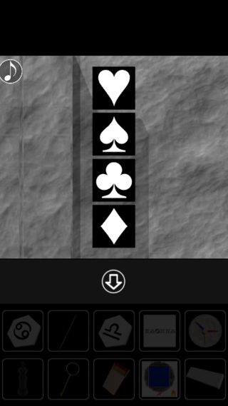 反対側に移動して、左の壁のハートとクローバーの位置を確認。