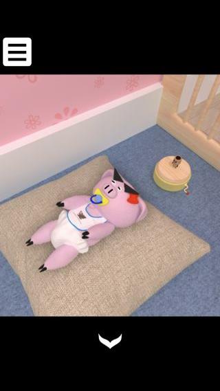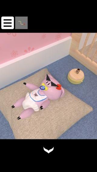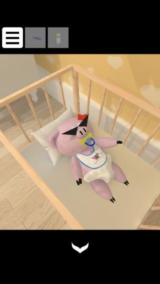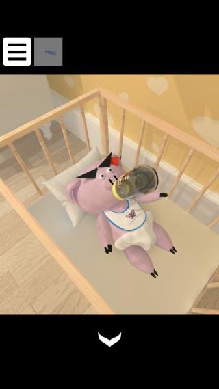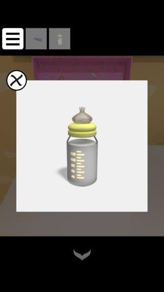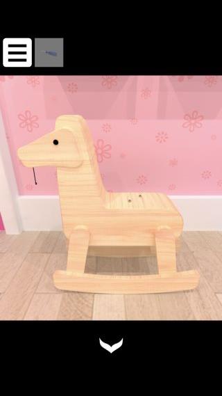 「哺乳瓶」を使って、前の部屋の木馬の前へ。