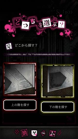 脱出ゲーム 狼ゲーム 無料 4.7 評価する 送信する STUDIO WASABI 7章 選択パート 左奥の開いている扉をタップする。 『上の階を探す』を選択する。 右の奥の扉をタップする。 エンド『消えない憎しみ』へ。 第1章:狼ゲームのはじまり 探索パート その1 探索パート その2 裁判パート 第2章:忍び寄る狼の牙 探索パート その1 探索パート その2 裁判パート 第3章:生きるために 探索パート その1 探索パート その2 探索パート その3 探索パート その4 探索パート その5 裁判パート 第4章:裏切り 探索パート 第5章:密室の謎 探索パート その1 探索パート その2 探索パート その3 裁判パート 第6章~エンディング リツ編 探索パート その1 探索パート その2 裁判パート リンタロウ編 ~前編~ 選択パート ~前編~ バッドエンドの出し方 ~後編~ 選択パート ~後編~ バッドエンドの出し方 チエ編 選択パート バッドエンドの出し方 コウ編 1章 選択パート 1章 バッドエンドの出し方 2章 選択パート 2章 バッドエンドの出し方 3章 選択パート 3章 バッドエンドの出し方 4章 選択パート 4章 バッドエンドの出し方 5章 選択パート 5章 バッドエンドの出し方 7章 選択パート 7章 バッドエンドの出し方 8章 選択パート 8章 バッドエンドの出し方 sideリンタロウ 9章 選択パート 10章 探索パート 10章 バッドエンドの出し方