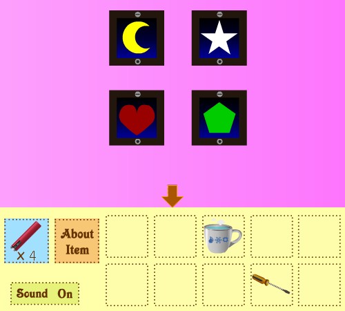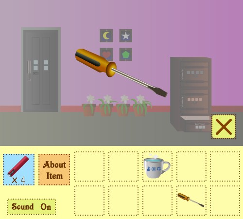 3つ目の部屋に移動して、扉に「カギ」を使って脱出。