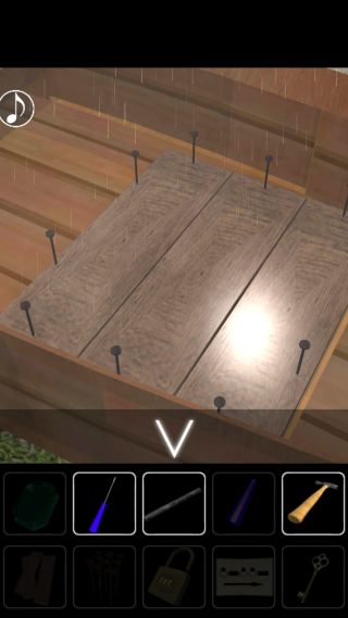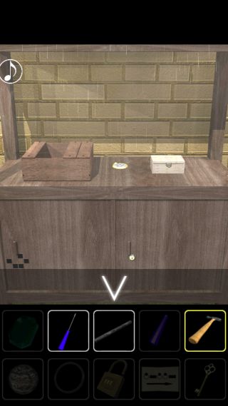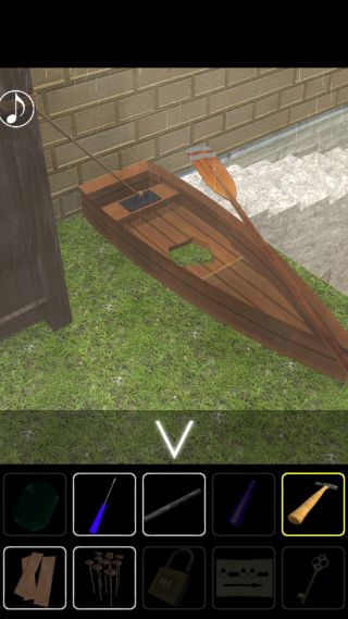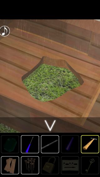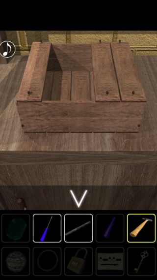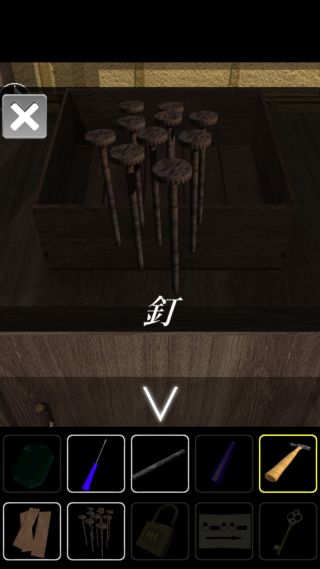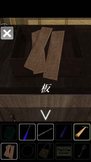 左の木箱に「ハンマー」を使って、「板」を入手。
