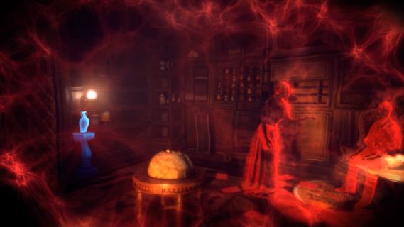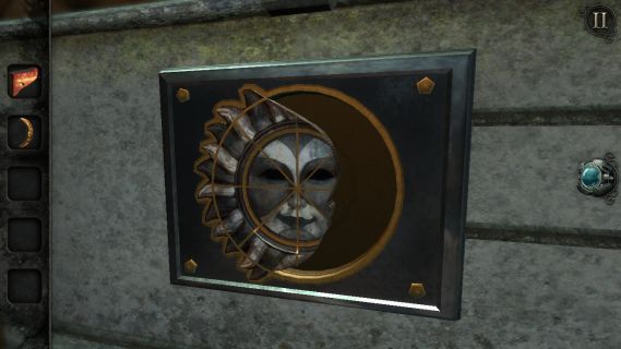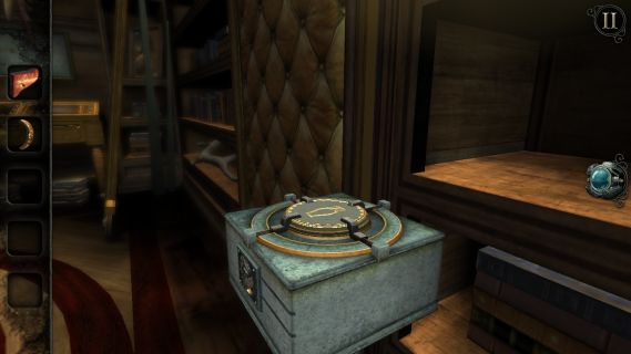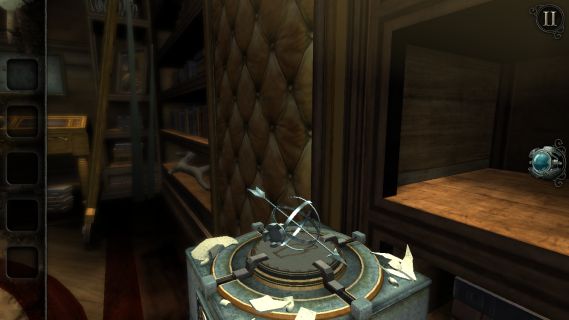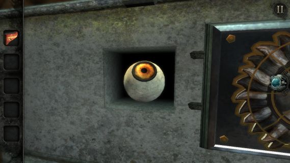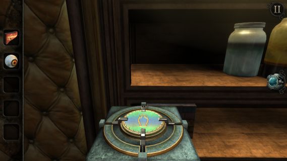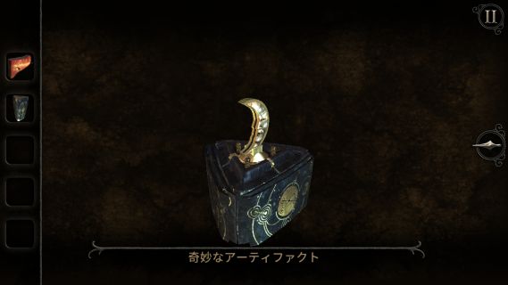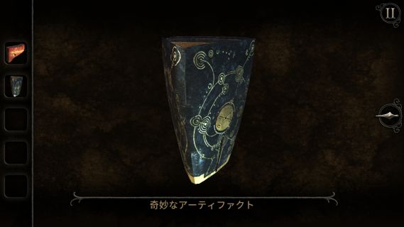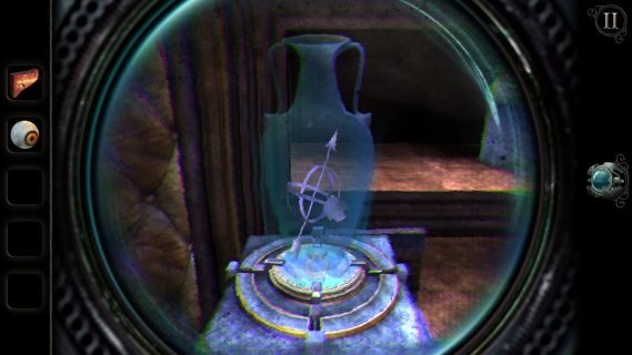 台座の上で「接眼鏡」を使って、壺の中に何かが入っているのを確認。