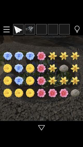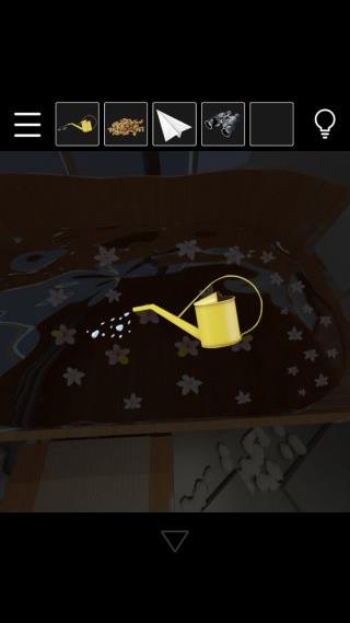 「じょうろ」の水をかけて、花の配置を確認。