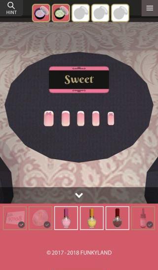 3色の「マニキュア」を使って、『赤、ピンク、黄、黄、ピンク』に合わせる。