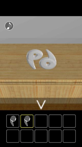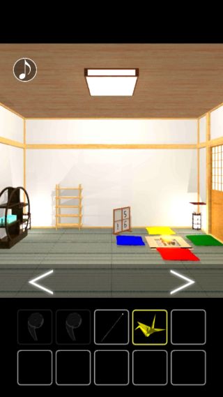 上の「折り紙」を置いて、掛け軸で確認した『左右右左左』に合わせる。