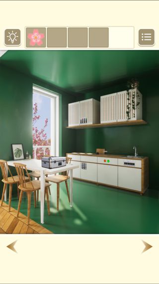 キッチンに移動して、左のテーブルの上の箱を拡大。
