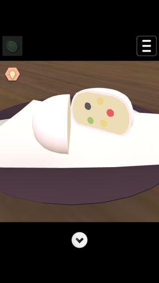 テーブルの上の饅頭を拡大して、「木のナイフ」で切る。