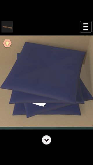 緑と灰色の座布団の裏も調べて、針の形と向きを確認。
